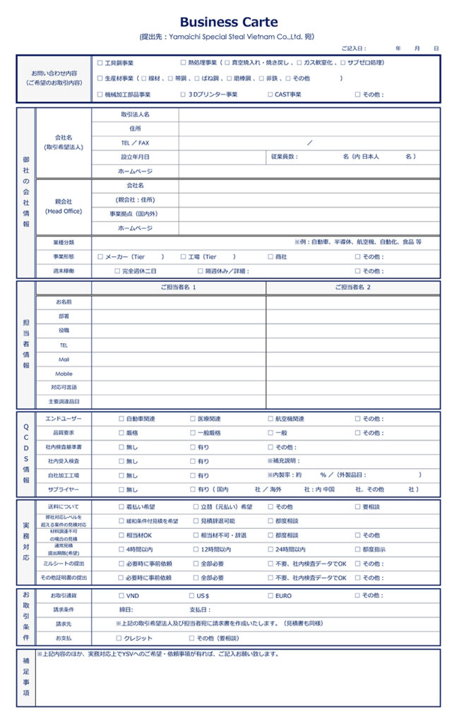 Once you have completed the Business Carte, please attach it to an email and send it to us. We will respond promptly.