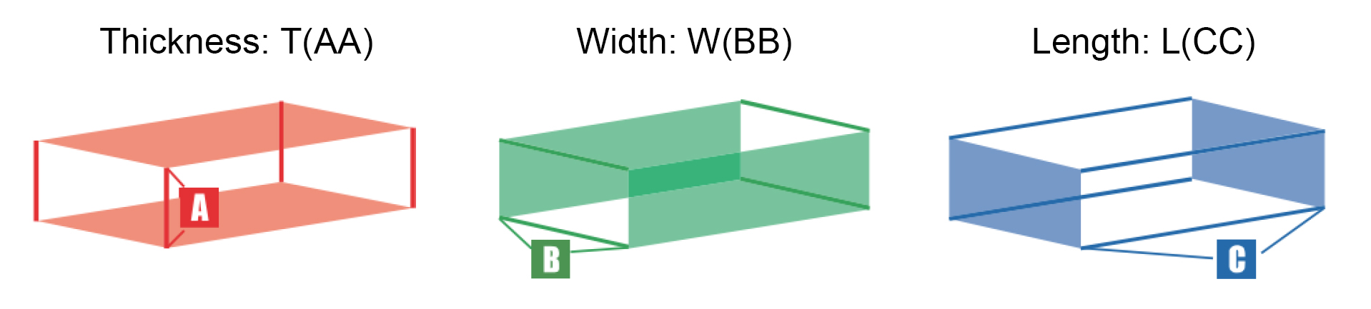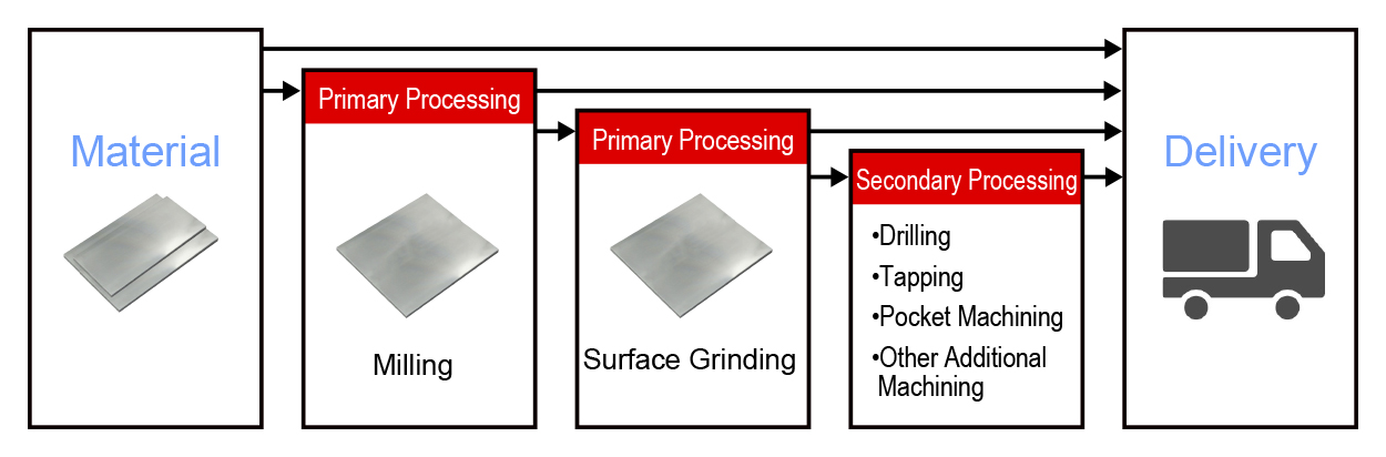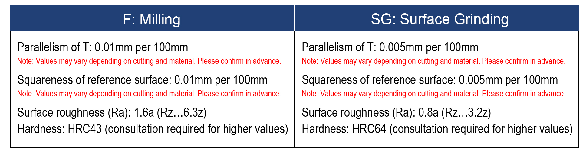 ※Notation: 2F = Two-Side Milling / 6F = Six-Side Milling / 2SG = Two-Side Surface Grinding / 6SG = Six-Side Surface Grinding